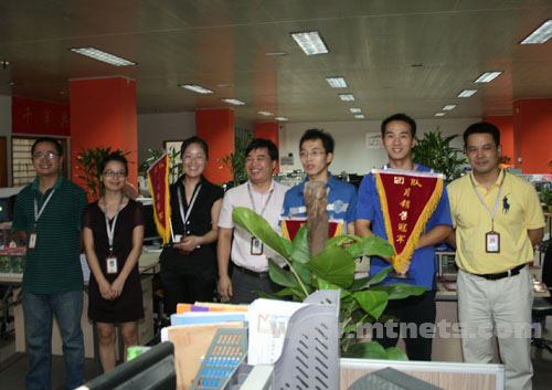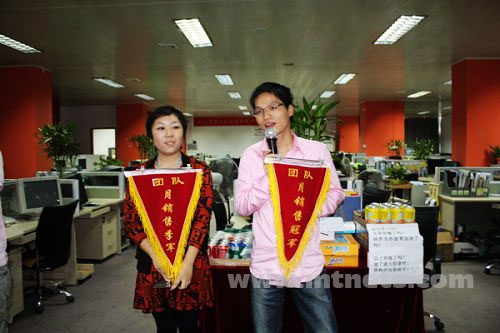 曹 林、虞巧巧、吴贵松、胡莲华、沈凯凯五位销售精英获得明通公司09年7月个人业绩奖,其中前三名被授予流动锦旗。