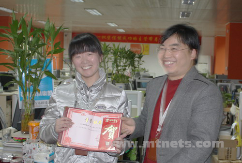 客服部杨云努力工作、认真负责,获得公司2009年度十二月份优秀客服奖