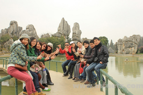 石林前的笑脸