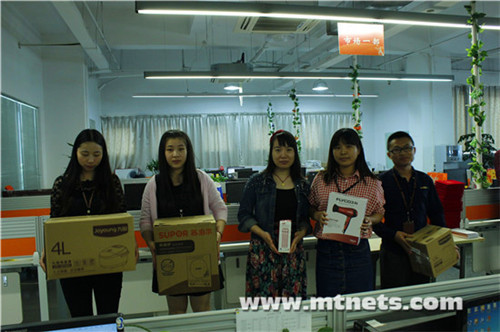 大会开始之前,这位入职不久的妹子大胆的高歌一曲,暖暖场! 销售龙虎狼业绩PK的奖励,各种实用生活用品 技术中心的精锐奖,研发,设计,优化,运维等部门 运营中心优秀模范奖,策划、买家等部门 只能委屈大家站一站了 客服部的杜拉拉奖,清一色妹子 编辑普利策奖,万红丛中一点绿