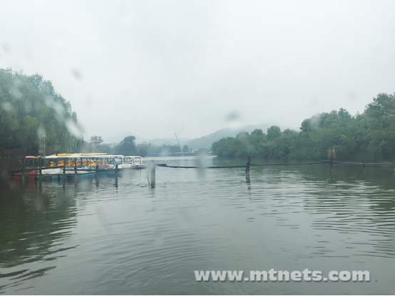因为是雨天,编辑部岸上的步行观光,只在下孙文化村附近。在下孙船埠,我们便坐上了一艘大游船,开始长达1小时的环湖观景。船上,听导游介绍着两岸历史文化和奇特景观。