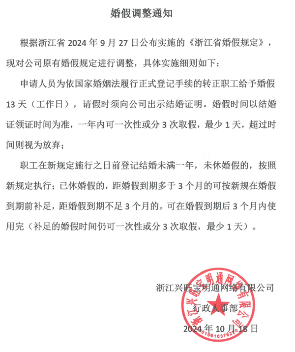 婚假通知,浙江婚假通知