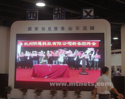 西湖区主题馆大屏幕播放明通公司宣传片