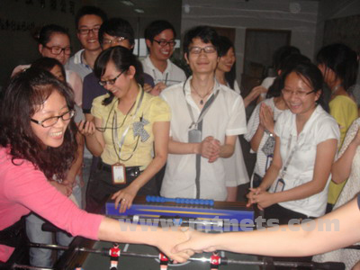 7月初,在南非世界杯如火如荼进行着的时候,明通公司桌上足球比赛也开打了。桌上足球是个新鲜的玩意,绝大部分人都没玩过,虽然如此,但依然有64位同事激情的参与,公司总经理、市场总监等足球爱好者也纷纷参与其中。