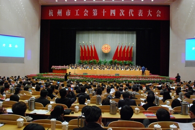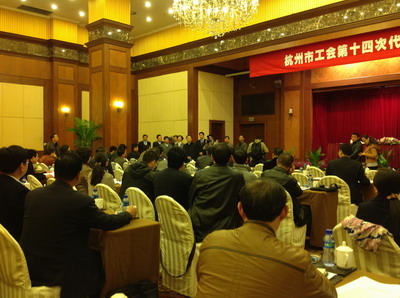 市人大常委会副主任、市总工会主席郑荣胜代表市总工会第十三届委员会作了题为《服务科学发展,服务职工群众,为打造东方品质之城、建设幸福和谐杭州作贡献》的工作报告。宁波市人大常委会副主任、总工会主席苏利冕和市妇联负责人分别代表兄弟城市总工会和市群众团体致辞。
