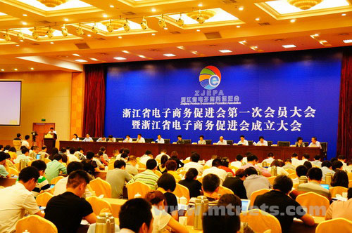 5月15日,浙江省电子商务促进会第一次会员大会暨浙江省电子商务促进会成立大会在杭州之江饭店举行。促进会在各地市商务部门的支持下,由阿里巴巴、浙江物产、嘉兴麦宝、生意宝、浙江在线等5家单位发起,受到65名常务理事和338个会员单位的共同支持。商务部浙江省特办、浙江省级相关部门专家、浙江省高校专家、企业会员代表和各地市商务主管部门领导、行业协会代表近350人参加了会议。