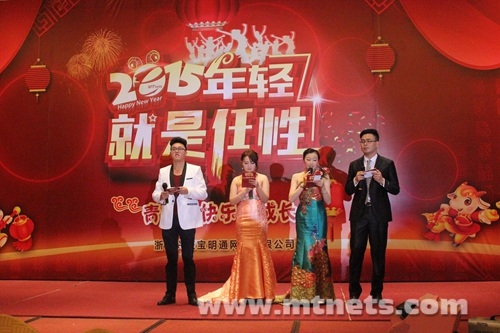 在“杭州市电子商务协会新春年会”上荣获了“2014年度杭州电子商务最具发展潜力企业”称号。带着对公司的美好祝愿,董事长陈胜明、执行总裁方国强、食品机械市场部经理陈晓君与米兰官方网站部胡宝军合唱一曲《在路上》,表示将在奋斗的路上继续前行。