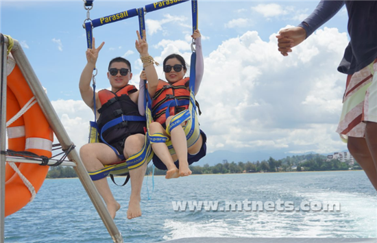 马来西亚沙巴很安静,路上没有汽车的鸣笛,当地人民也很热情,给明通人一个难忘的小型假期,我们玩海上牵引伞,深浅,海底漫步,几位男生还和当地的人踢了一场足球友谊赛