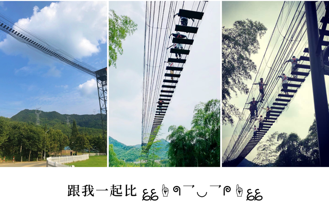 环保在线的小伙伴们经受住了一轮又一轮的高空视觉冲击,摩拳擦掌又兴奋地开启了“你恐高?你不恐高?”的试验之旅。颤颤巍巍的心,小心翼翼的jio,高空迎面的风,还有旁边传来的尖叫......