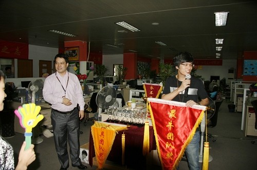 明通老员工,“资历哥”詹玉明给虎队PK胜出的同学颁发奖金