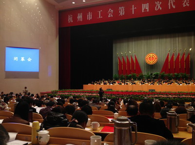市人大常委会副主任、市总工会主席郑荣胜代表市总工会第十三届委员会作了题为《服务科学发展,服务职工群众,为打造东方品质之城、建设幸福和谐杭州作贡献》的工作报告。宁波市人大常委会副主任、总工会主席苏利冕和市妇联负责人分别代表兄弟城市总工会和市群众团体致辞。