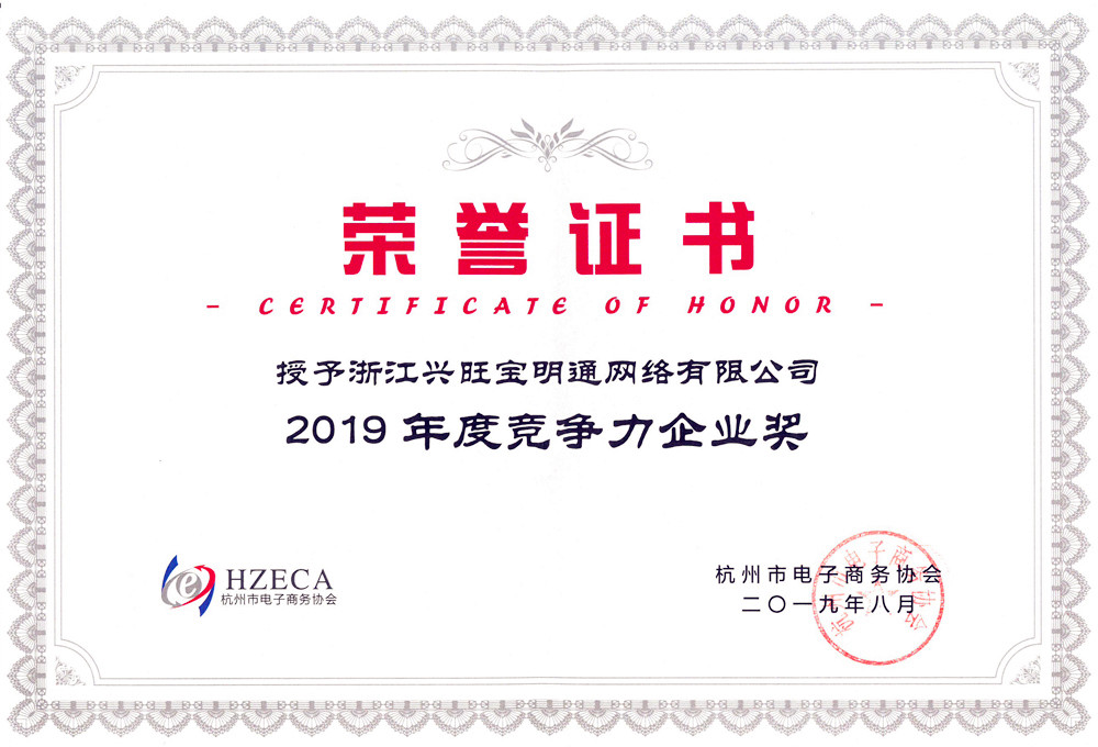 荣获“2019年度竞争力企业奖”