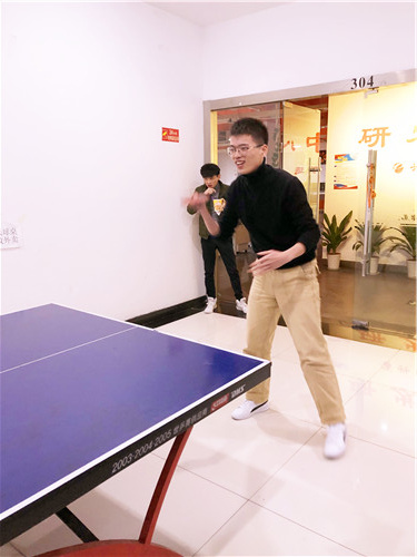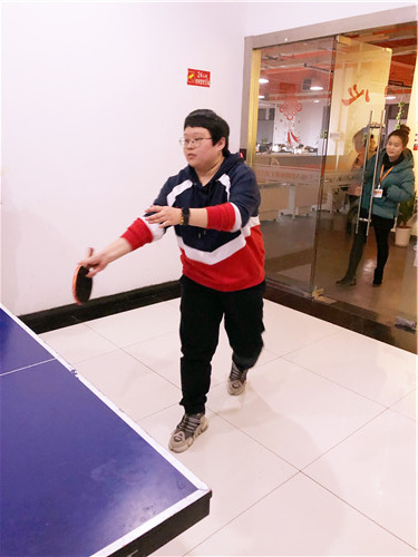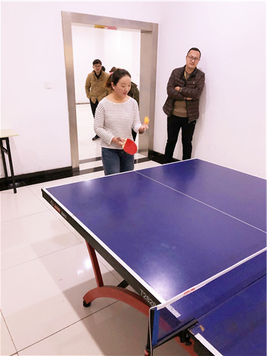 开赛前,乒乓球俱乐部部长李强同志先来亮个相