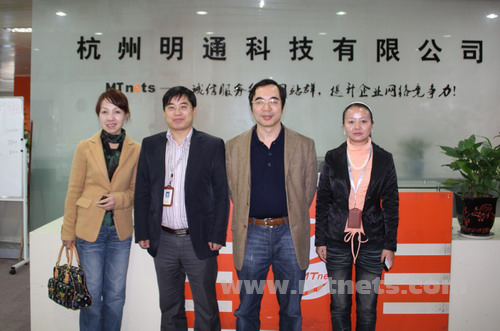 11月13日,杭州市信息办产业发展处处长龚加伟、副处田华莅临杭州明通科技有限公司参观指导。明通CEO陈胜明热情接待了市信息办领导,并在总经理办公室介绍了明通公司各个行业网站的发展情况和经营理念。龚处、田处均对公司具有激情和实力的年轻团队予以鼓励和赞赏,希望明通旗下网站在企业信息化建设的道路上继续发扬领路人的作用,推进更多行业、更多企业发展信息化,合理运用电子商务提升企业竞争力。